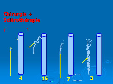 Cela arrive surtout avec les grosses varices. Pour des varices plus grosses et relativement profondes, on améliore l’efficacité du produit sclérosant en pratiquant des scléroses à la mousse. Ces scléroses peuvent se faire sous contrôle échographique, pour guider l’aiguille et suivre la progression de la mousse dans la veine : on parle de sclérose écho-guidée à la mousse. Elle va irriter sa paroi (action chimique) et créer, à la suite de l’inflammation obtenue, un processus de fibrose de la paroi. Elle est concurrencée aujourd’hui par la sclérothérapie au laser pour les très fines varicosités.